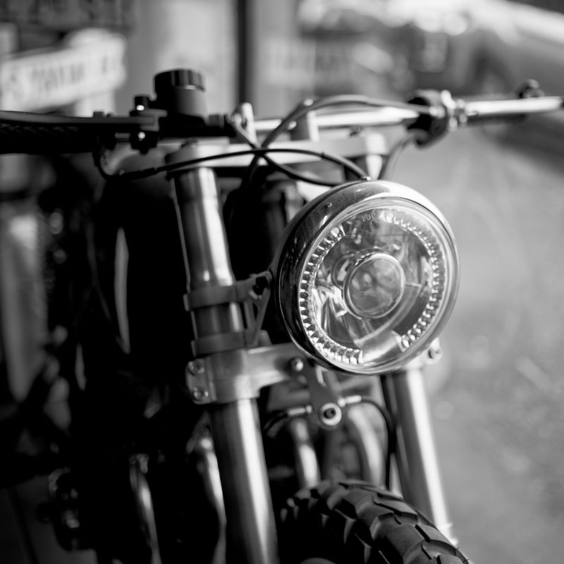 In this specific scene, the results are striking primarily because of how difficult it is to tell the two apart. Both images are remarkably similar, from the great sharpness on the focal point of the headlight to the smooth, gradual transition into the out of focus areas. The contrast and the way the highlights are managed on the metallic surfaces are nearly identical.