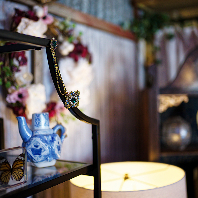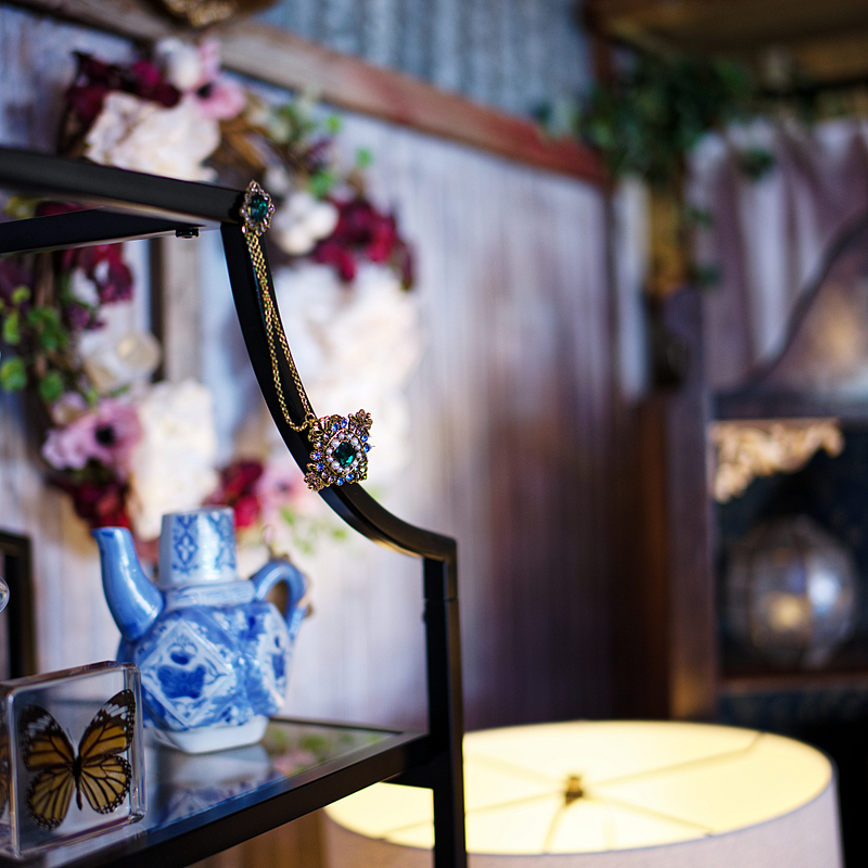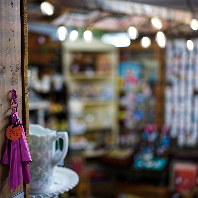 For this next set of samples, I decided to go into one of the consignment stores in thw village. These types of locations are perfect for testing rendering of lenses because they are packed with loads of textures, colors, and varying background that can really challenge a lens and create interesting bokeh. My primary focus point for these shots was the ornate brooch hanging in the center of the frame.