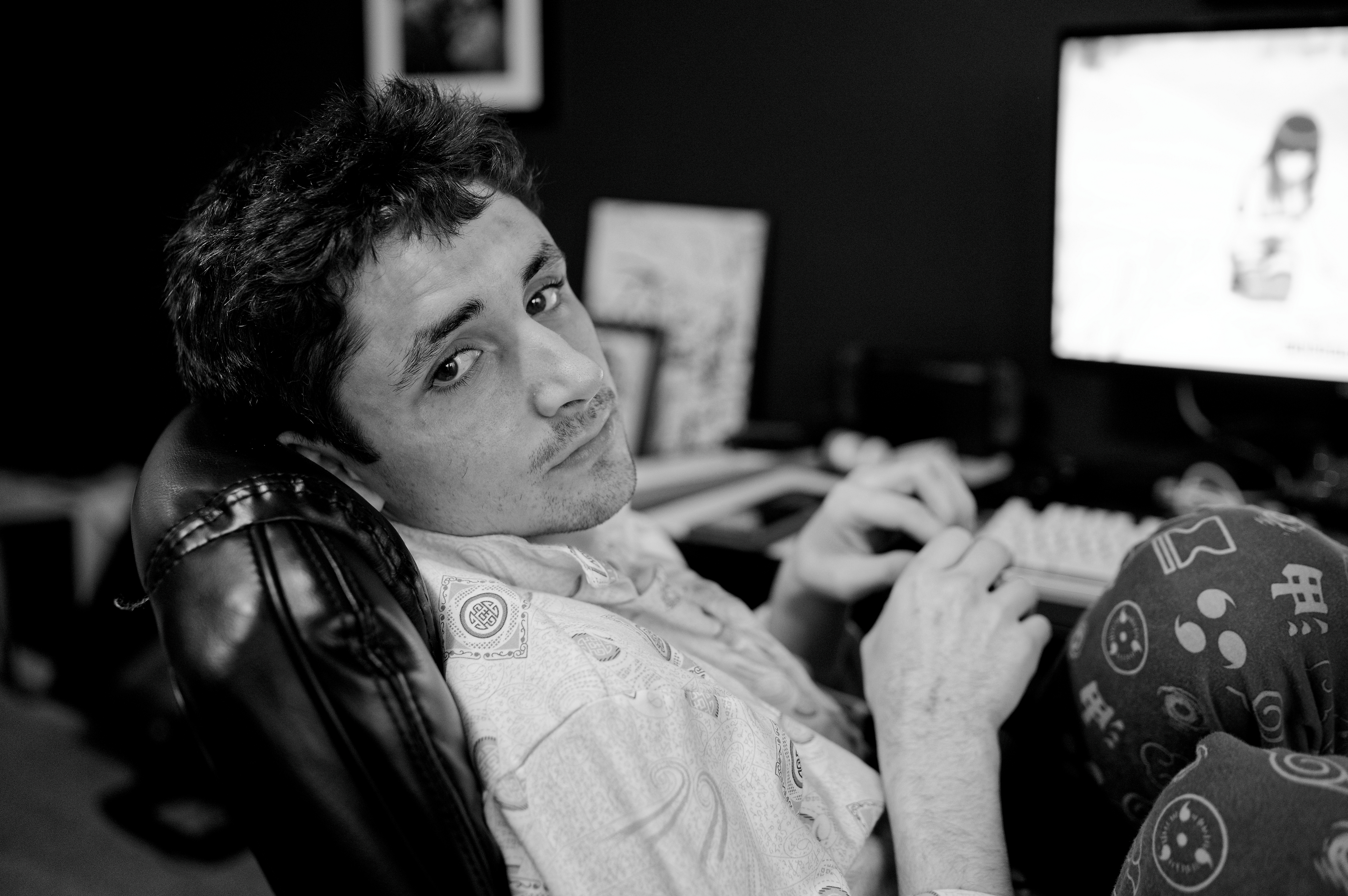 Even in the office portrait of a coworker with glasses, the lens's signature micro contrast is on full display. The texture of the facial hair and the subtle reflections in the eyewear are rendered with a biting clarity that makes the subject feel tangible.