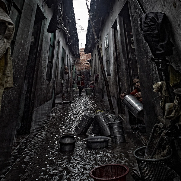 Back streets Dhaka during a Monsoon downpour