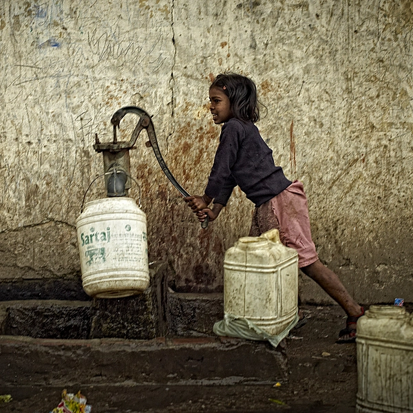 Young girl on water duty Spice Market Delhi