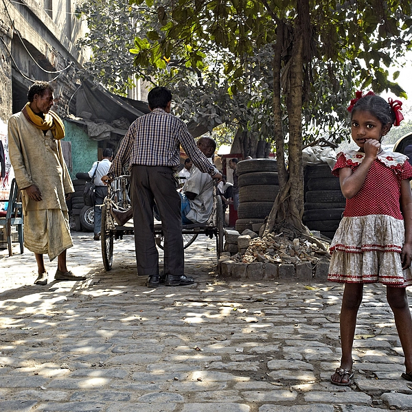 Young Girl waits for her Father to finish gossiping Kolkata