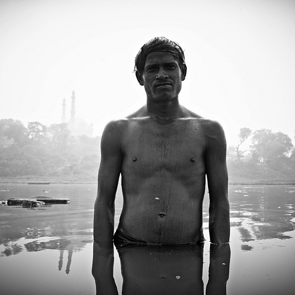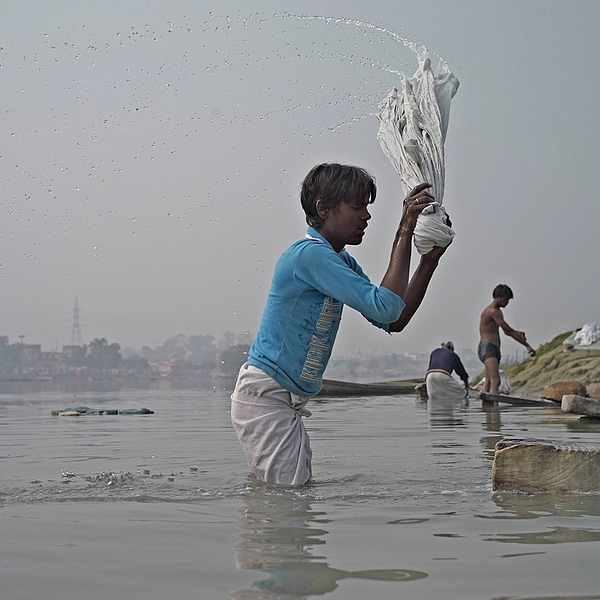 Stonewashing shirts in the Gomti River Lucknow