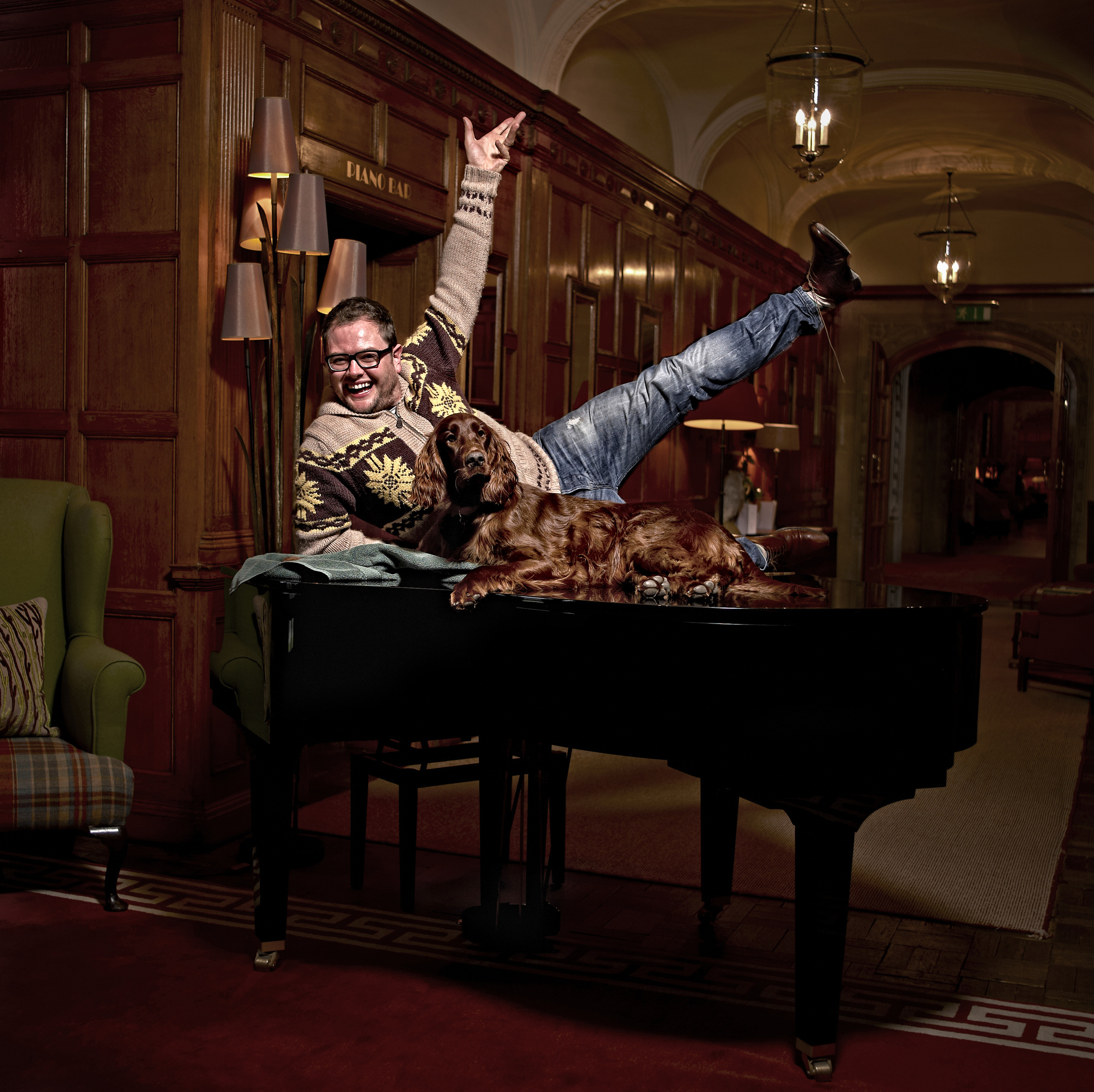 Comedian and Television Personality Alan Carr and his Red Setter Bev