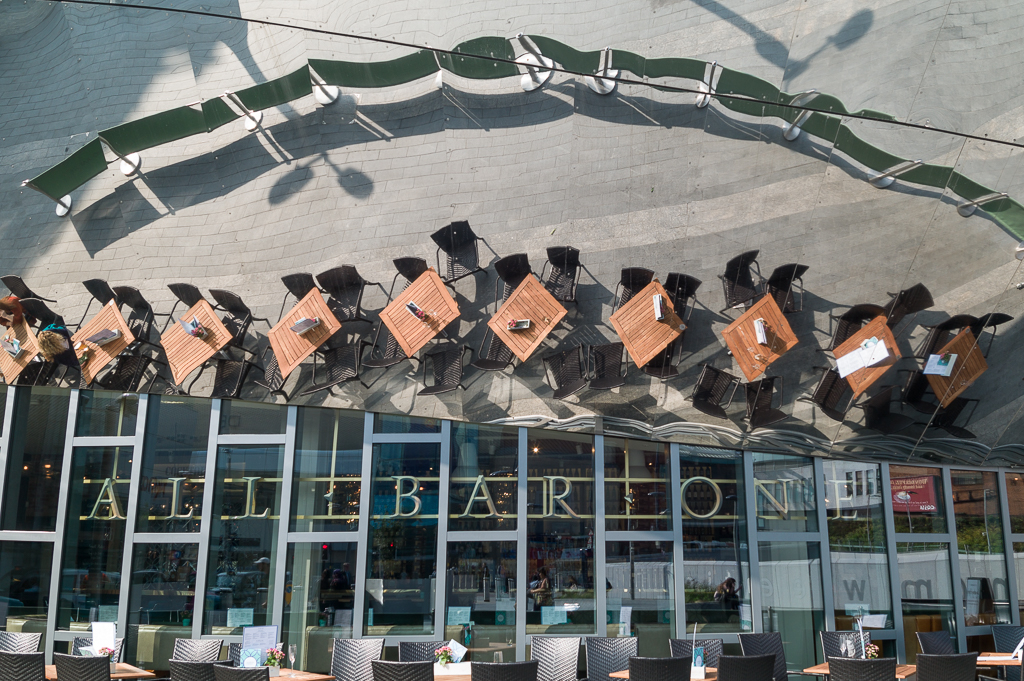 The entrance to Great Central in Birmingham contains panels in which fascinating reflections make strange images.